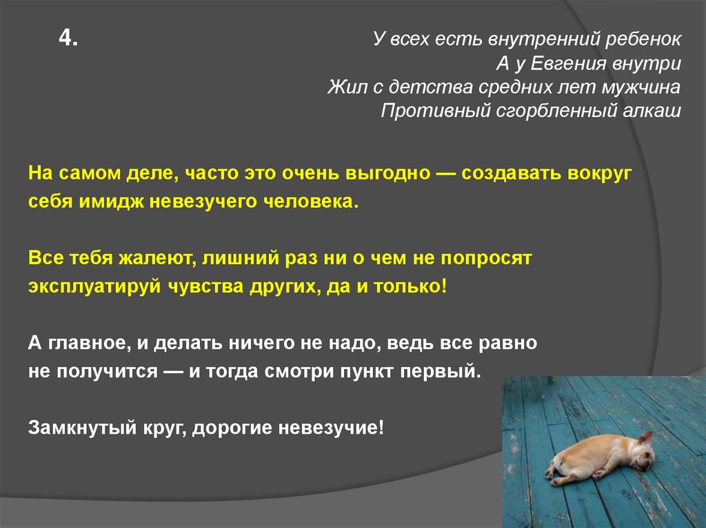 4. I. Если человеку хронически не везет, что, скорее всего, он делает не так?...