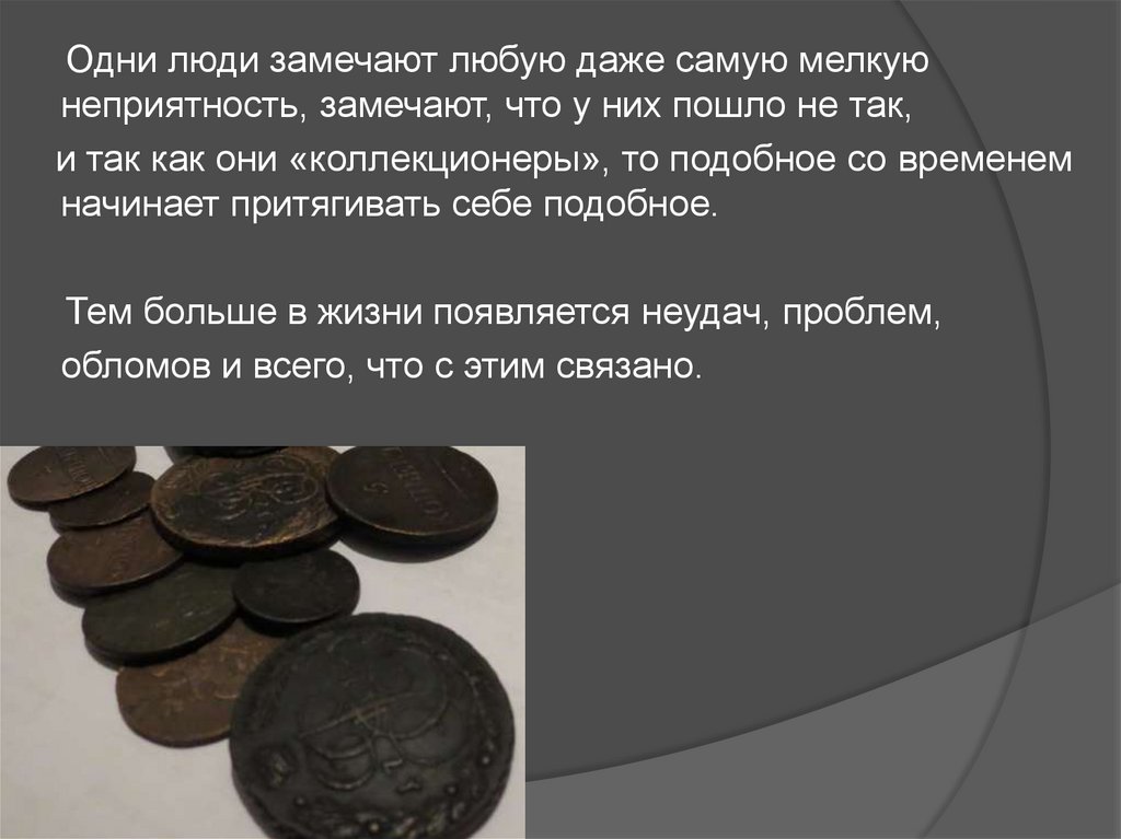 Одни люди замечают любую даже самую мелкуюнеприятность, замечают, что у них пошло не так,