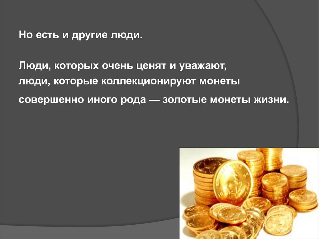 совершенно иного рода — золотые монеты жизни.
