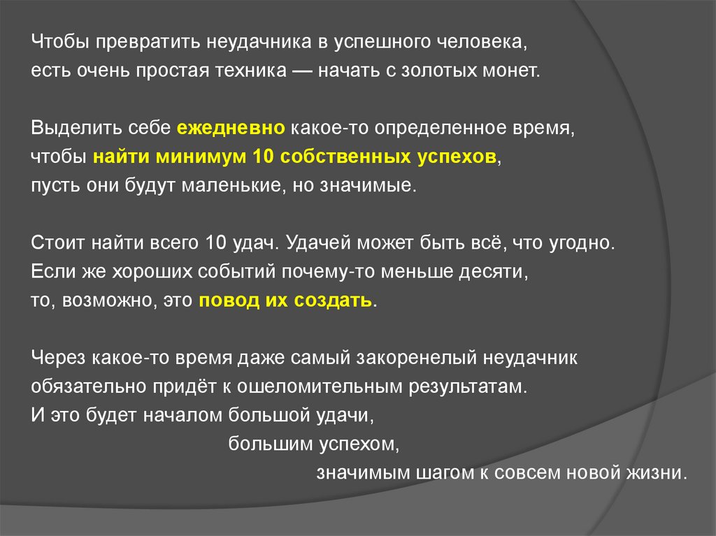 Чтобы превратить неудачника в успешного человека,есть очень простая техника — начать с золотых монет.