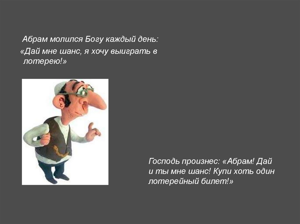 Абрам молился Богу каждый день:«Дай мне шанс, я хочу выиграть в