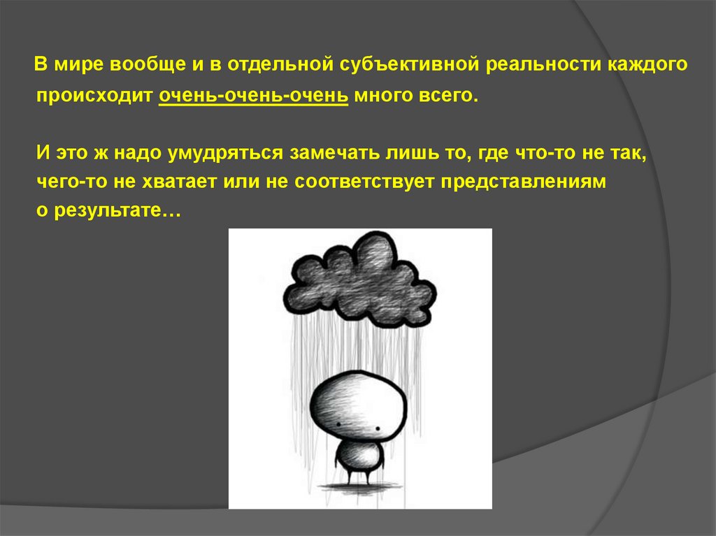 В мире вообще и в отдельной субъективной реальности каждогопроисходит очень-очень-очень много всего.