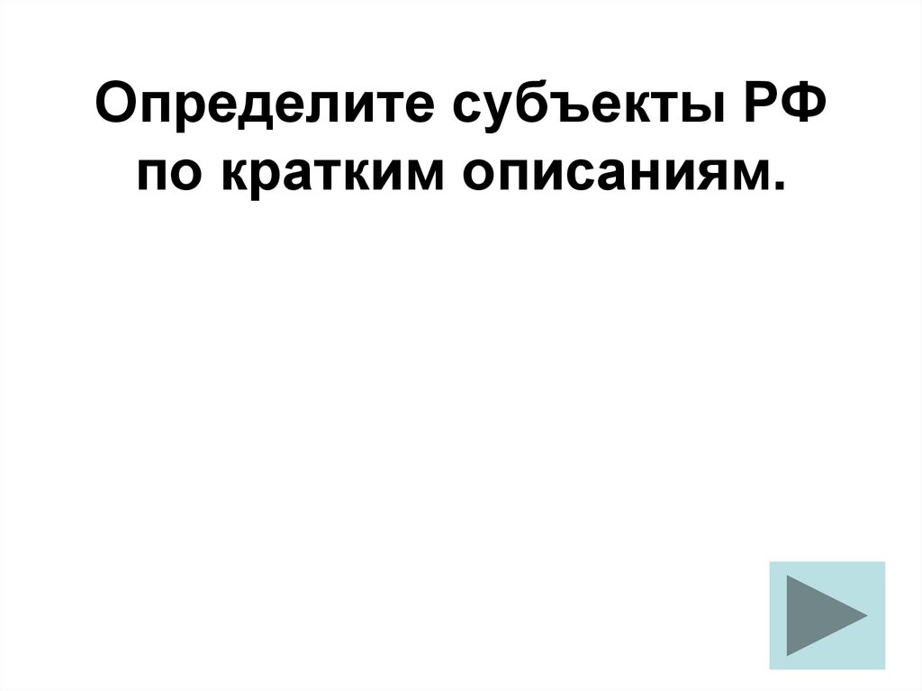 1. Определите субъекты РФ по кратким описаниям.