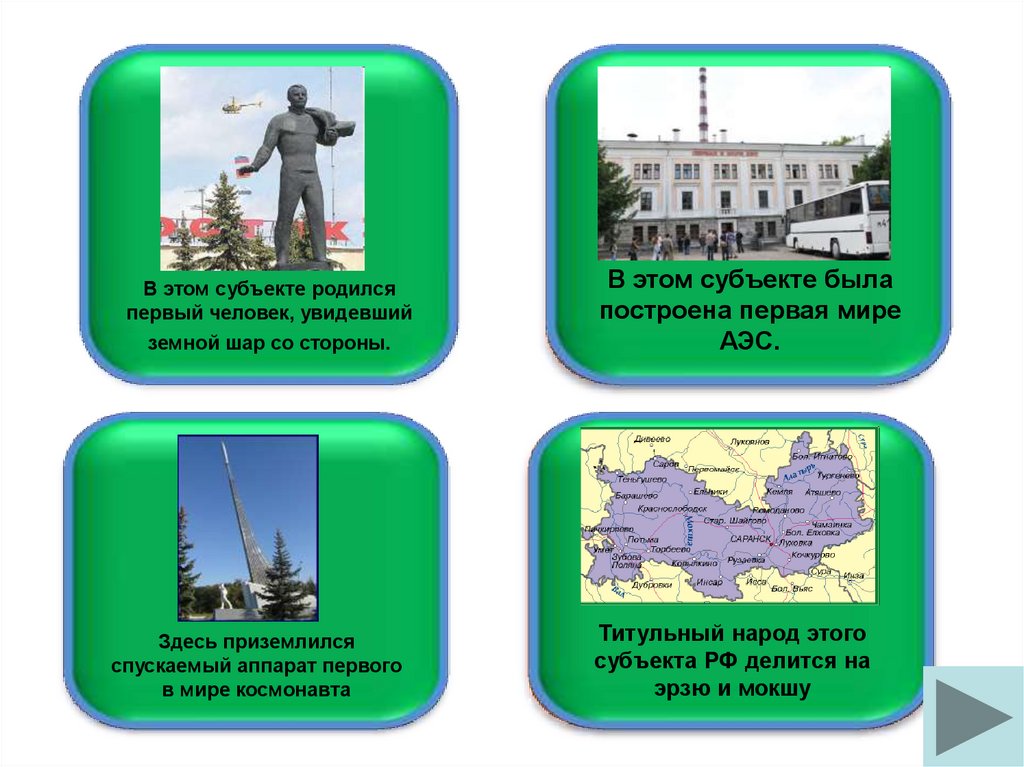 • На одной стороне записана краткая информацияо субъекте РФ, на другой - ответ. Сначала