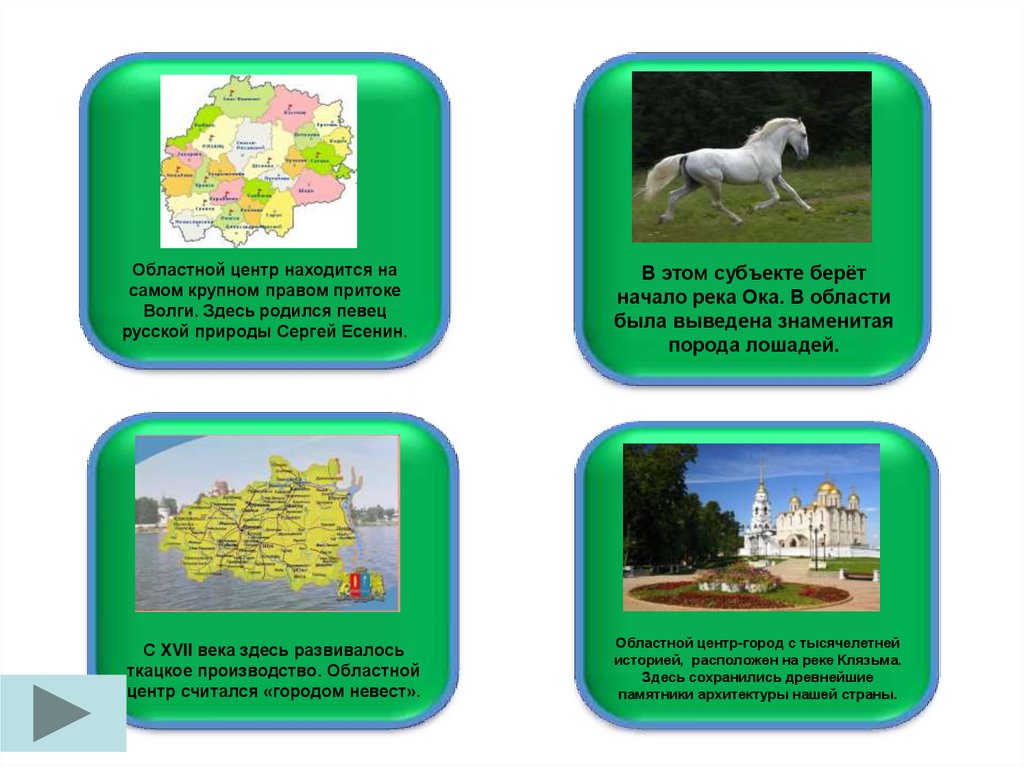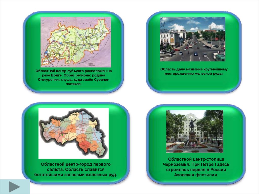 Областной центр субъекта расположен нареке Волге. Образ региона: родина