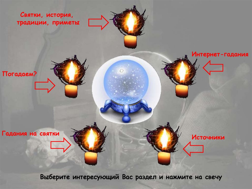 Выберите интересующий Вас раздел и нажмите на свечу