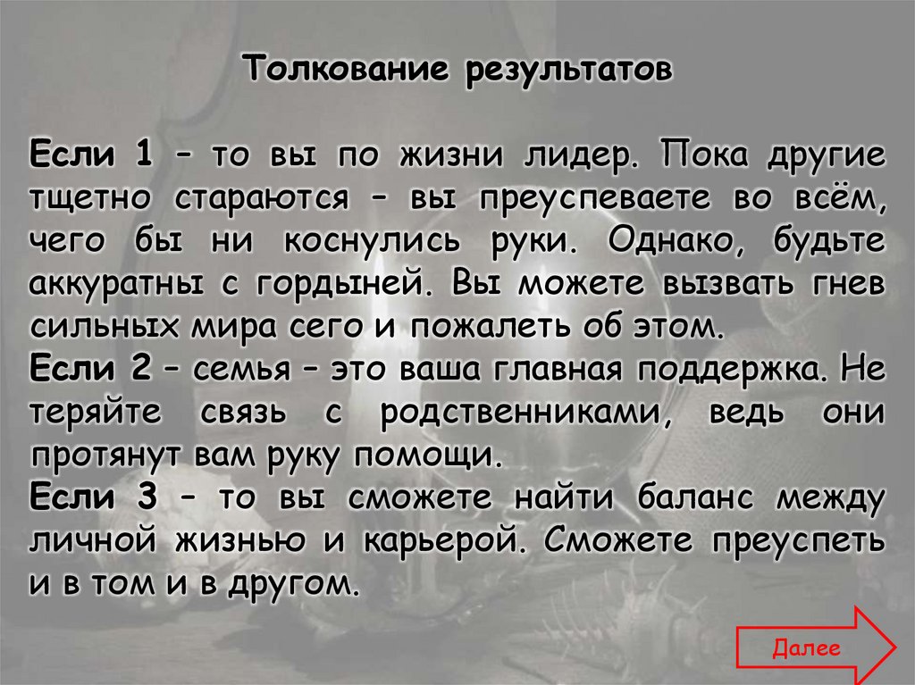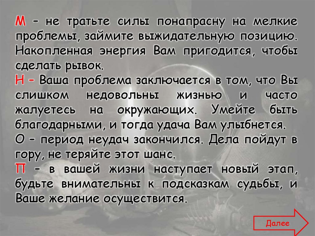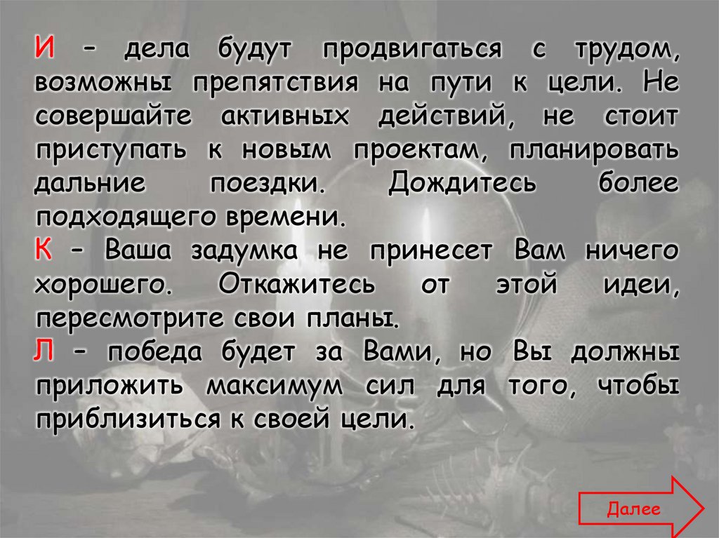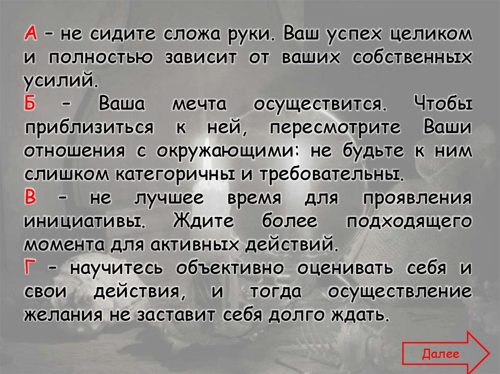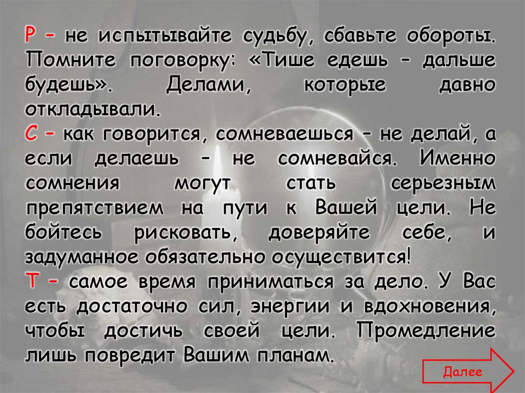 Для того чтобы узнать, что Вас ожидает вближайшем будущем, Вам необходимо выбрать