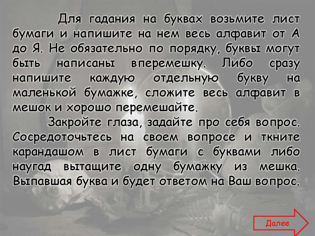 Гадание по буквам - http://vsemagi.ru/articles/po-bukvam