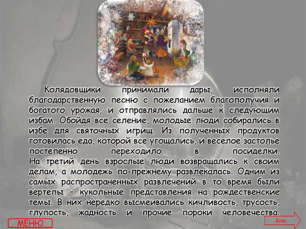 плясок, гаданий и ряженья (даже после