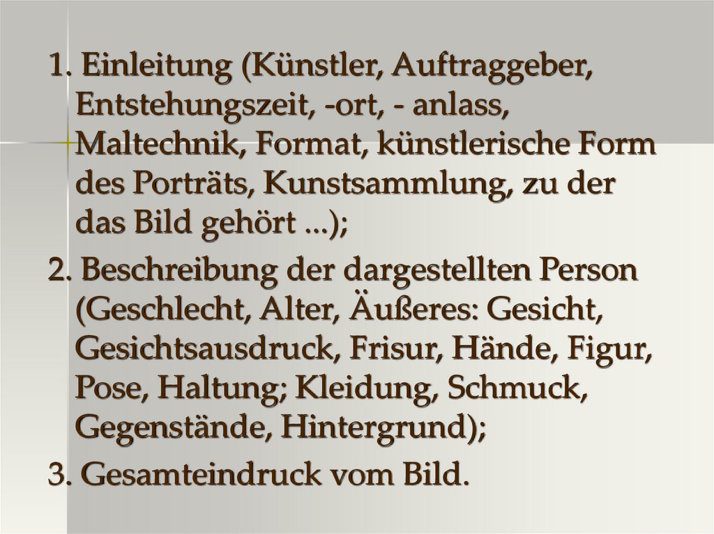 1. Allgemeines Schema zur Beschreibung von Bildnissen