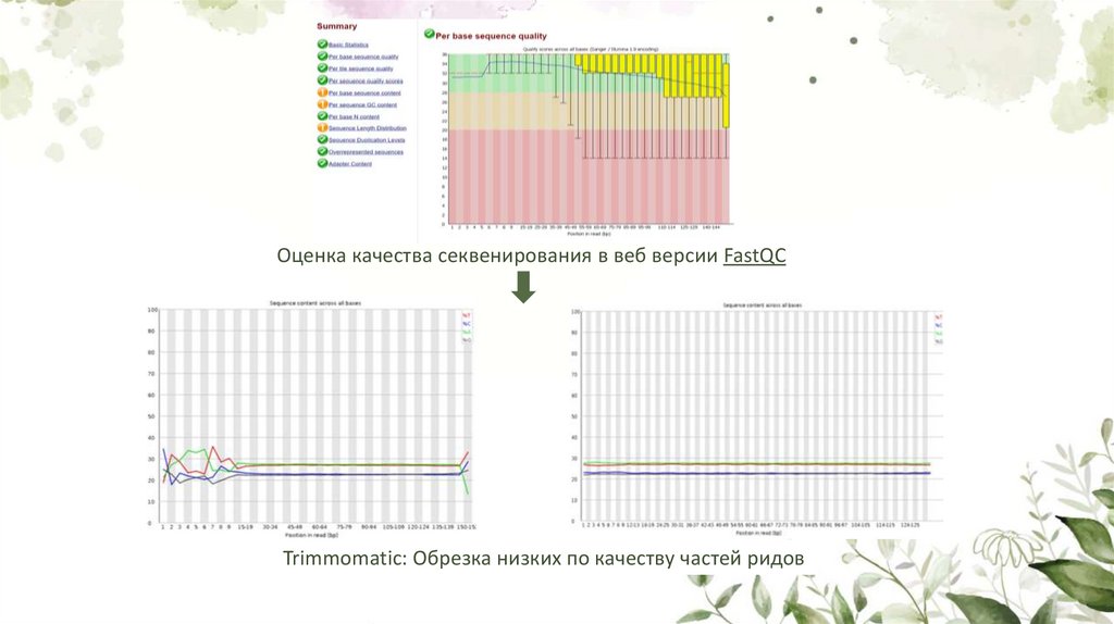 Оценка качества секвенирования в веб версии FastQCTrimmomatic: Обрезка низких по качеству частей ридов