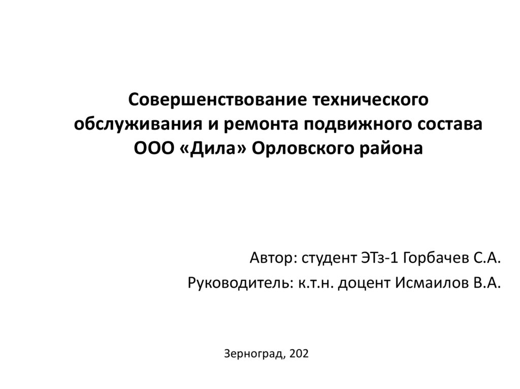 Совершенствование технического обслуживания и ремонта подвижного состава ООО «Дила» Орловского района
