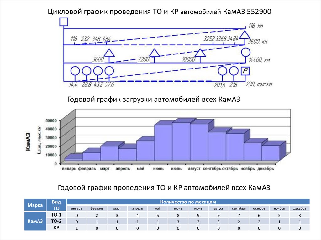 Годовой график проведения ТО и КР автомобилей всех КамАЗ