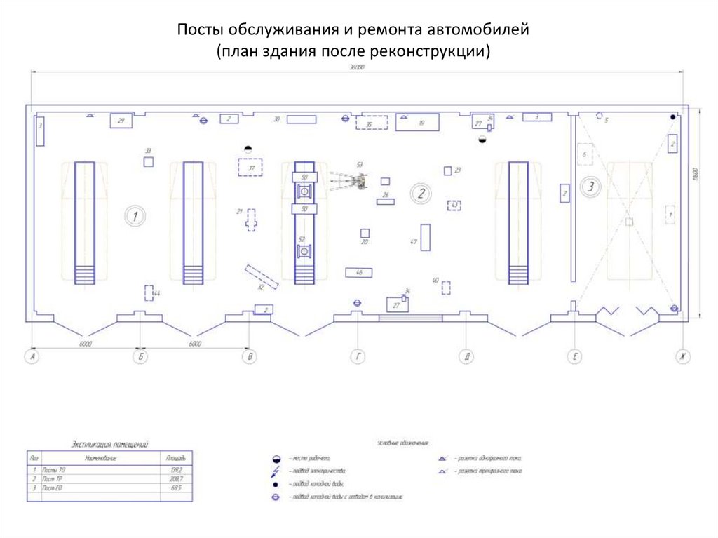 Посты обслуживания и ремонта автомобилей(план здания после реконструкции)
