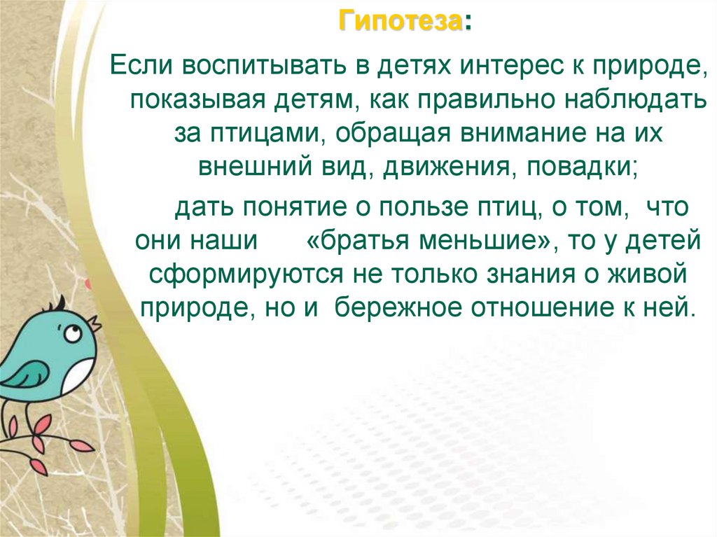 Гипотеза:Если воспитывать в детях интерес к природе,
