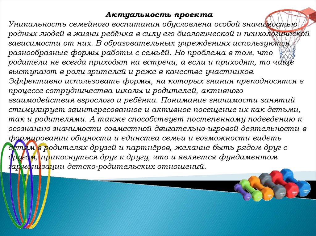 Актуальность проектаУникальность семейного воспитания обусловлена особой значимостью