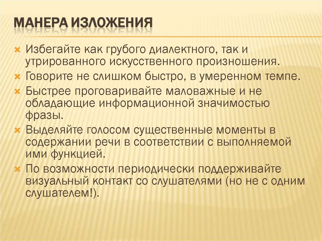 Избегайте как грубого диалектного, так иутрированного искусственного произношения.