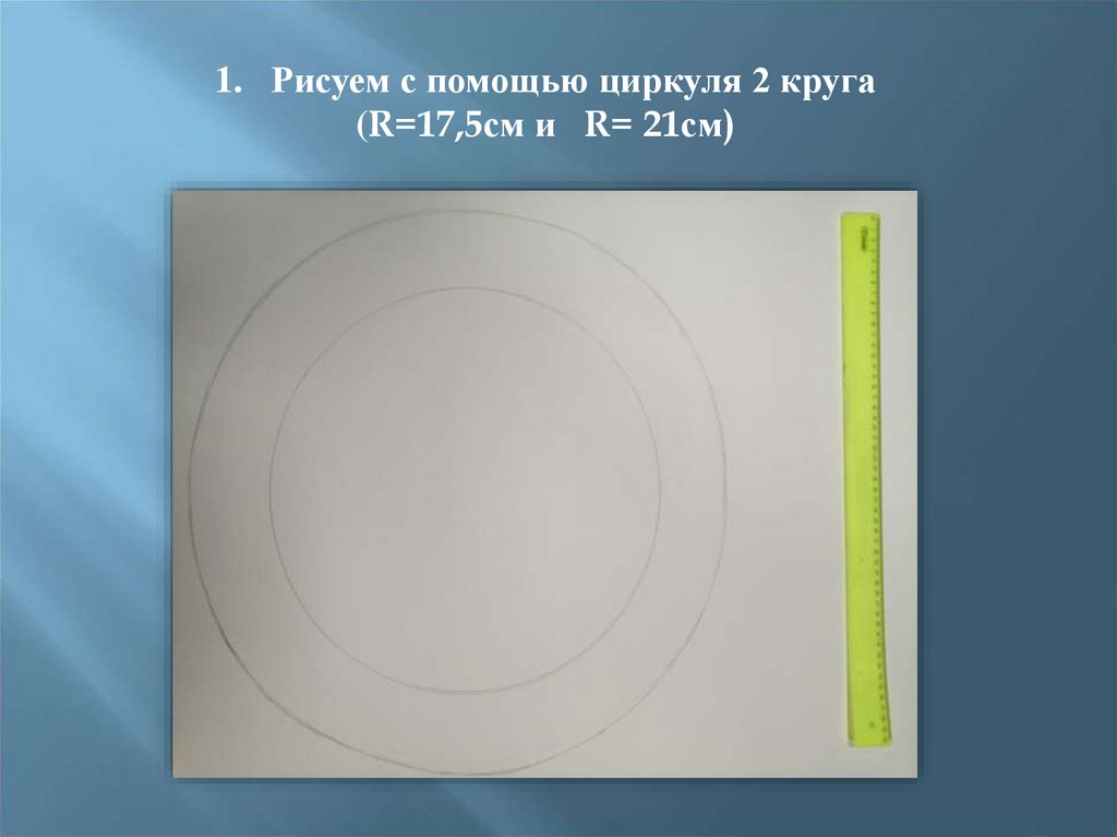1. Рисуем с помощью циркуля 2 круга(R=17,5см и R= 21см)
