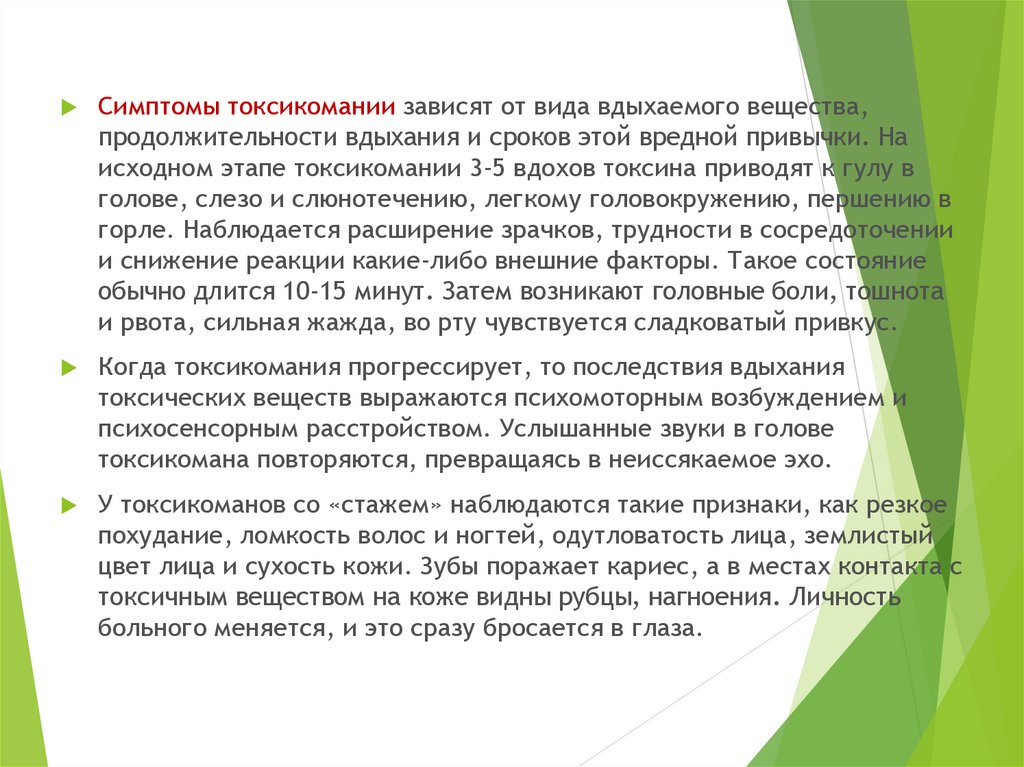 Для токсикоманий характерны такие симптомы, как