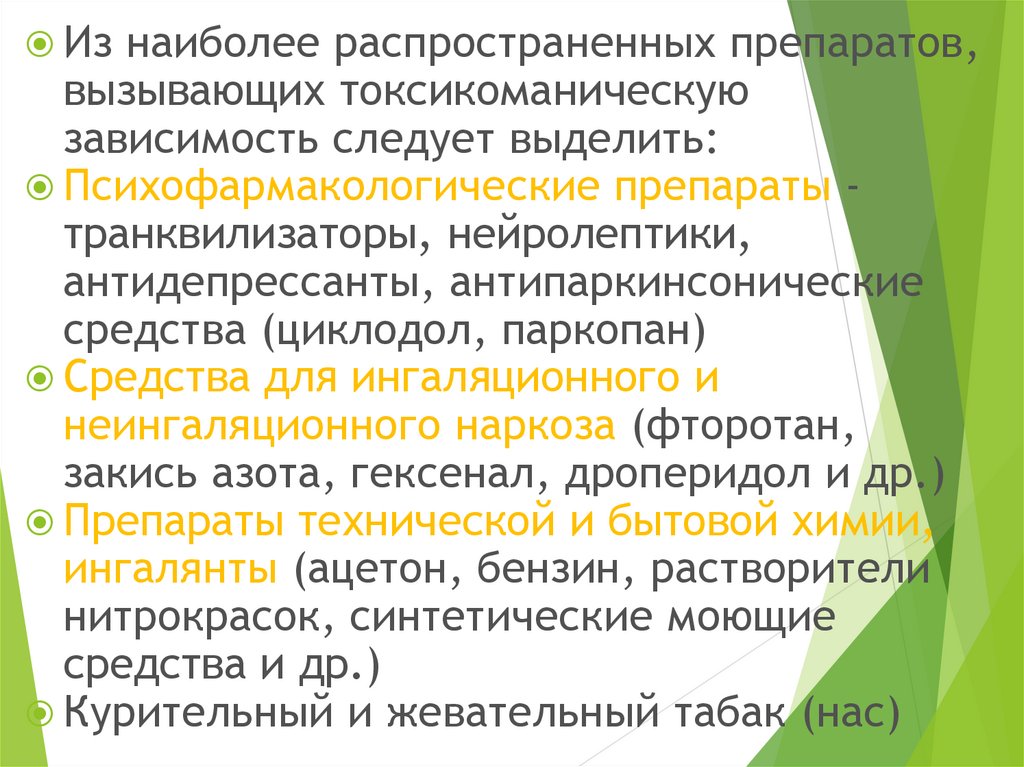 вызывающих токсикоманическую