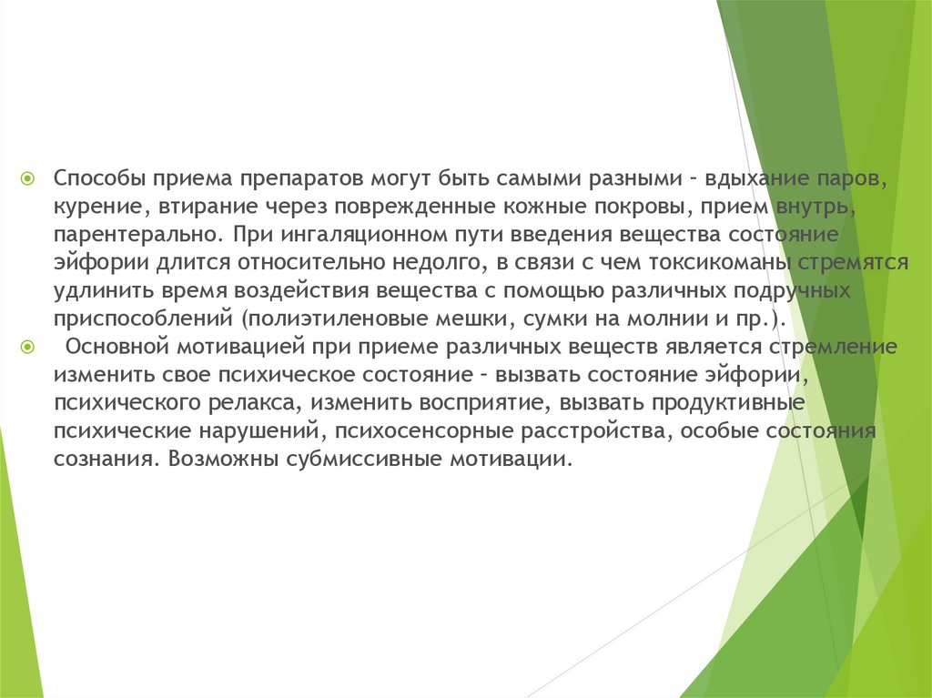 Способы приема препаратов могут быть самыми разными – вдыхание паров,курение, втирание через поврежденные кожные покровы, прием внутрь,