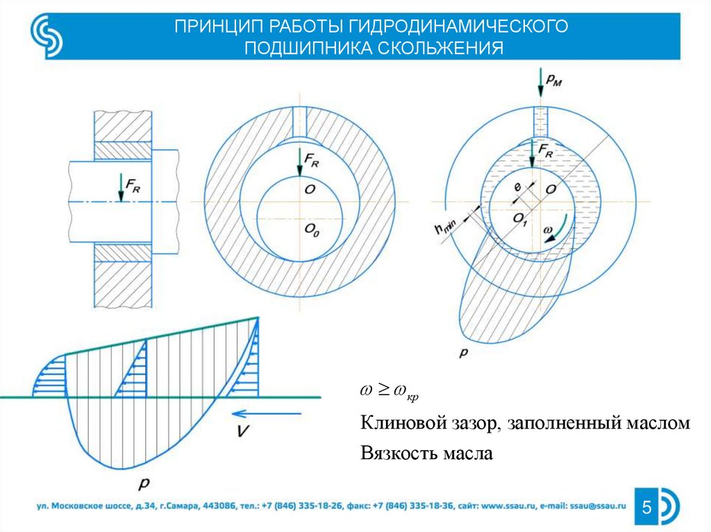 ПРИНЦИП РАБОТЫ ГИДРОДИНАМИЧЕСКОГОПОДШИПНИКА СКОЛЬЖЕНИЯ
