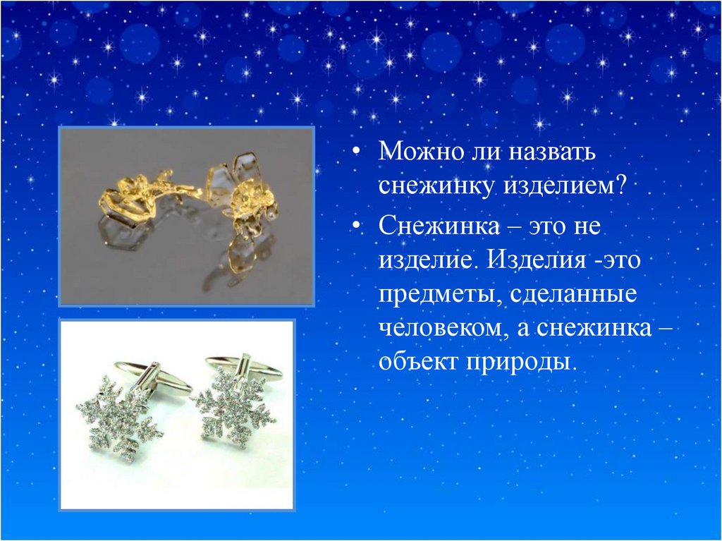 • Можно ли назватьснежинку изделием?