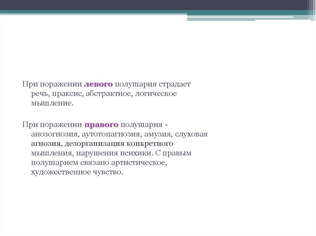мышления, нарушения психики. С правым
