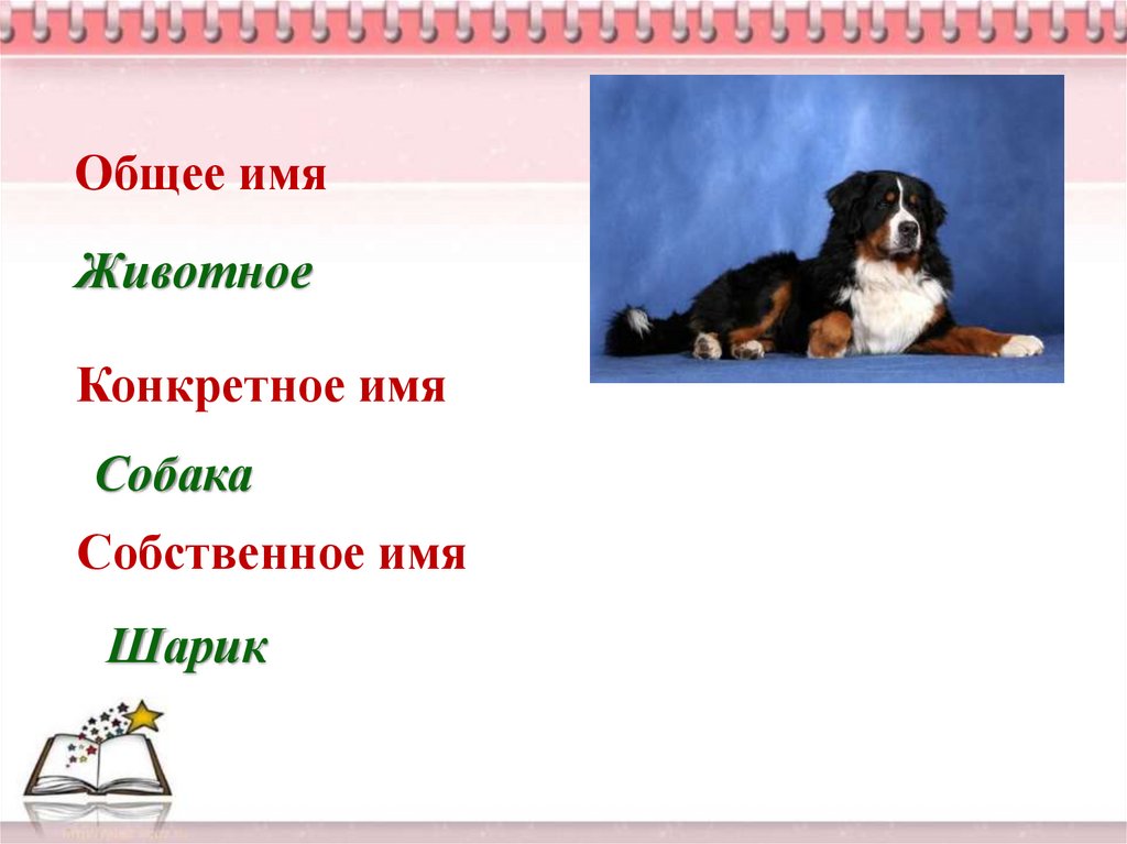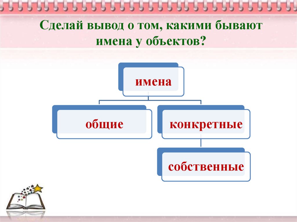 Рассмотри схему. Придумай общее,конкретное и собственное имя самому себе.