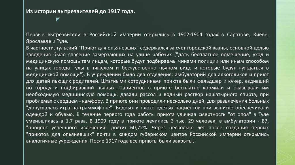 "приютов для опьяневших" почти в каждом губернском центре Российской империи открылись