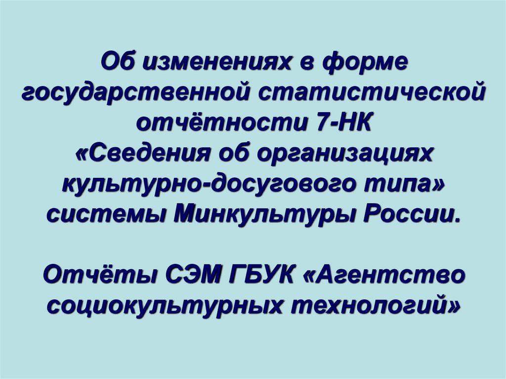 1. Об изменениях в форме государственной статистической отчётности 7-НК «Сведения об организациях культурно-досугового типа»