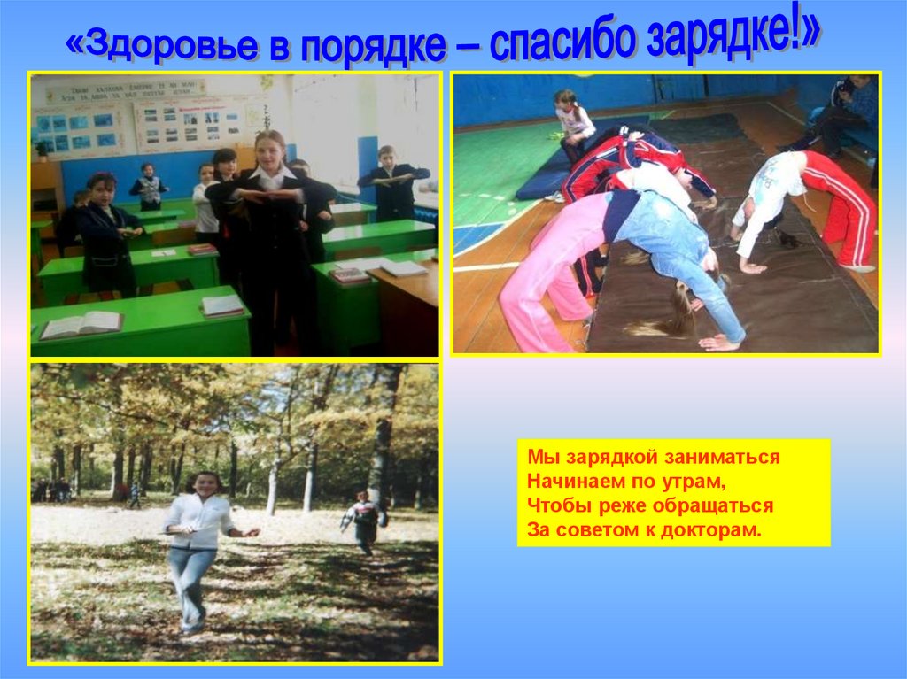 Мы зарядкой заниматьсяНачинаем по утрам,