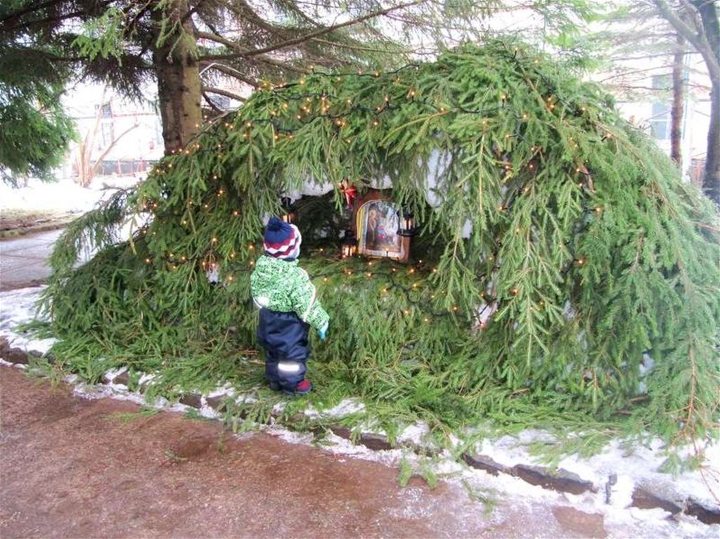 Можно сделать вертепиз веток елки