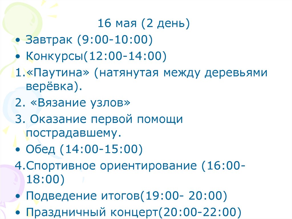 8.Программа15 мая (1 день)
