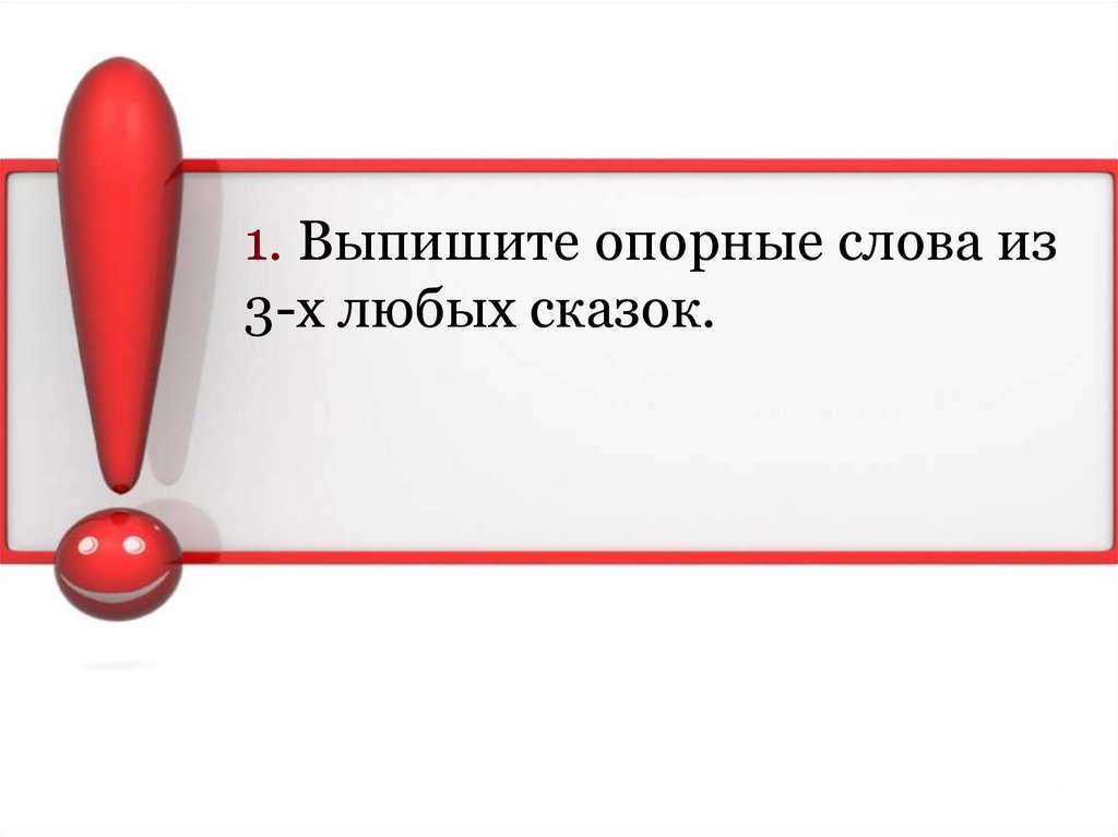 1. Выпишите опорные слова из3-х любых сказок.