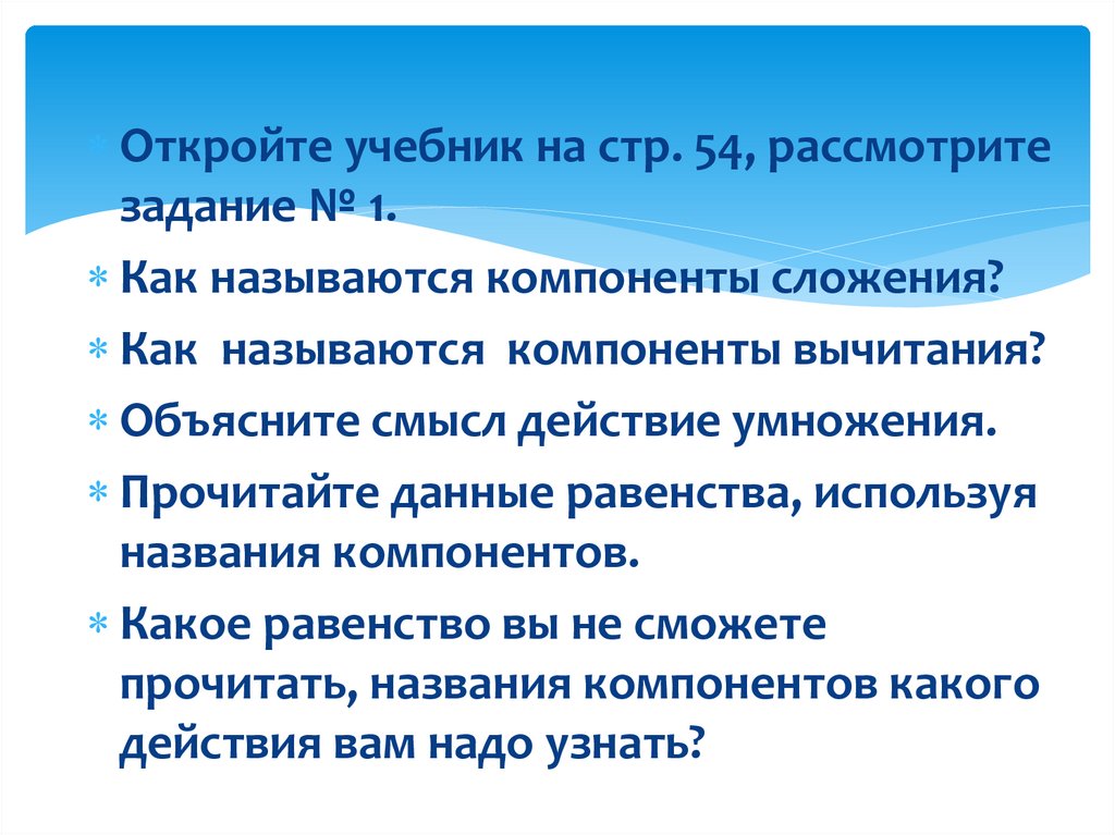 Откройте учебник на стр. 54, рассмотритезадание № 1.