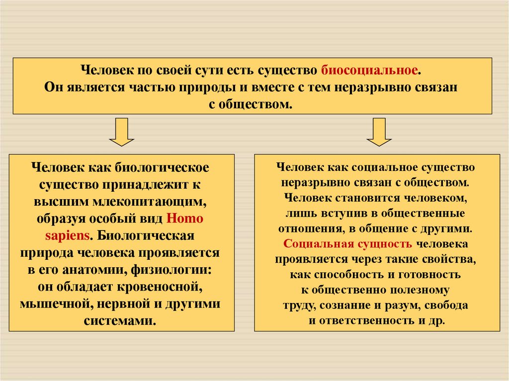 Человек по своей сути есть существо биосоциальное.Он является частью природы и вместе с тем неразрывно связан