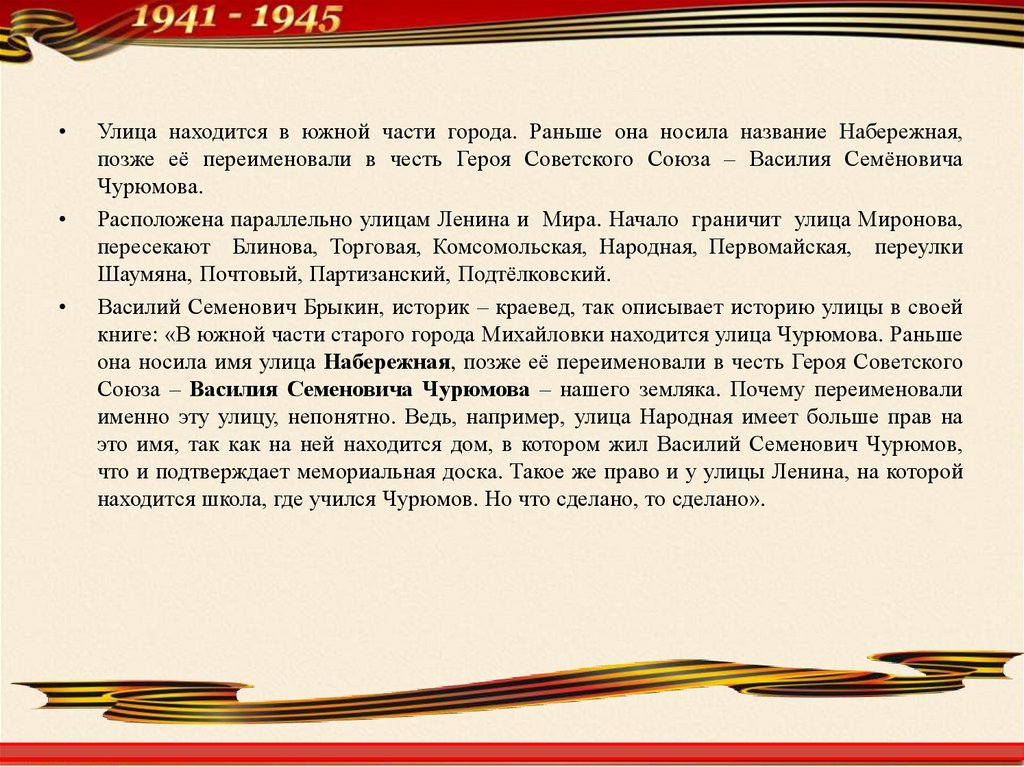 Есть улица Чурюмова - Героя,