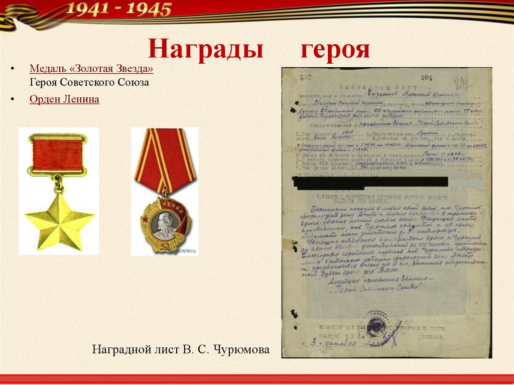 Наградной лист В. С. Чурюмова