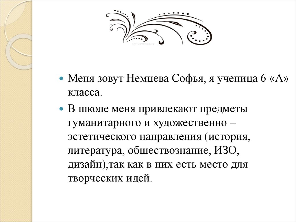Меня зовут Немцева Софья, я ученица 6 «А»класса.