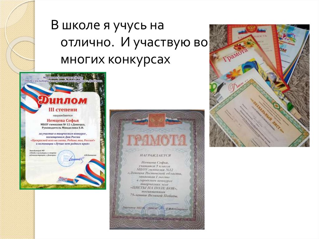 В школе я учусь наотлично. И участвую во