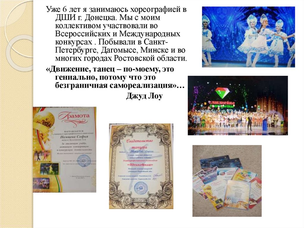 Уже 6 лет я занимаюсь хореографией вДШИ г. Донецка. Мы с моим