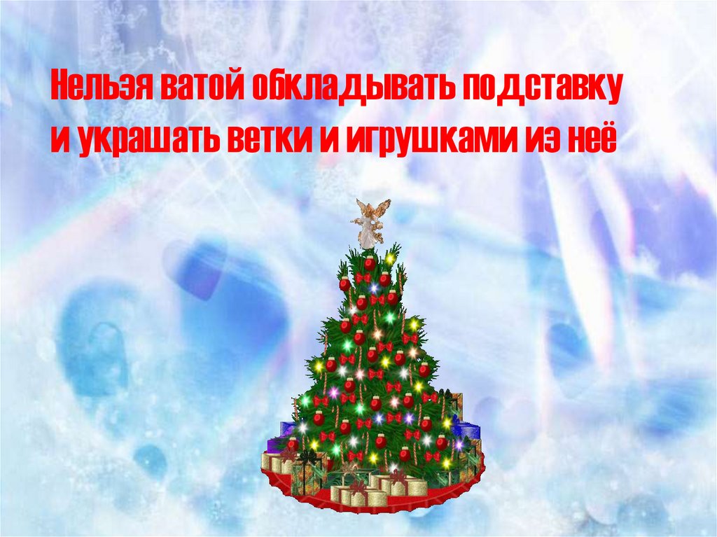 Нельзя ватой обкладывать подставкуи украшать ветки и игрушками из неё