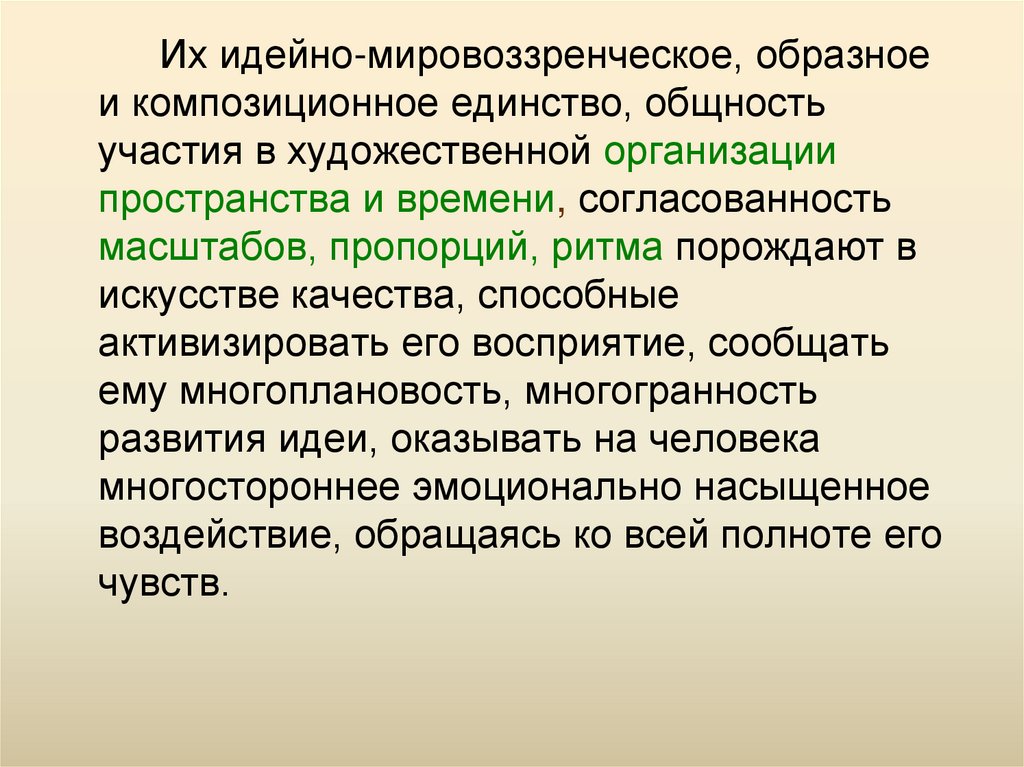 масштабов, пропорций, ритма порождают в
