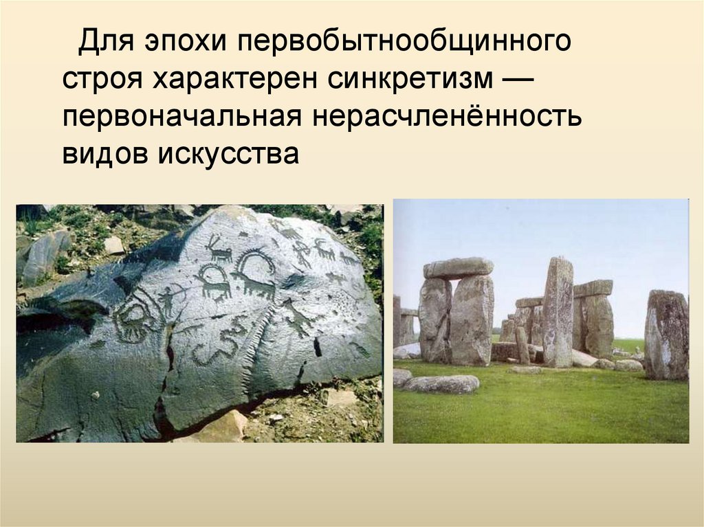 Для эпохи первобытнообщинногостроя характерен синкретизм —