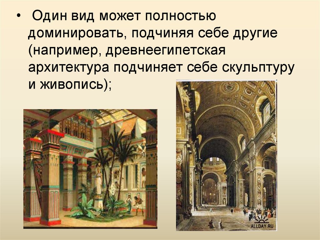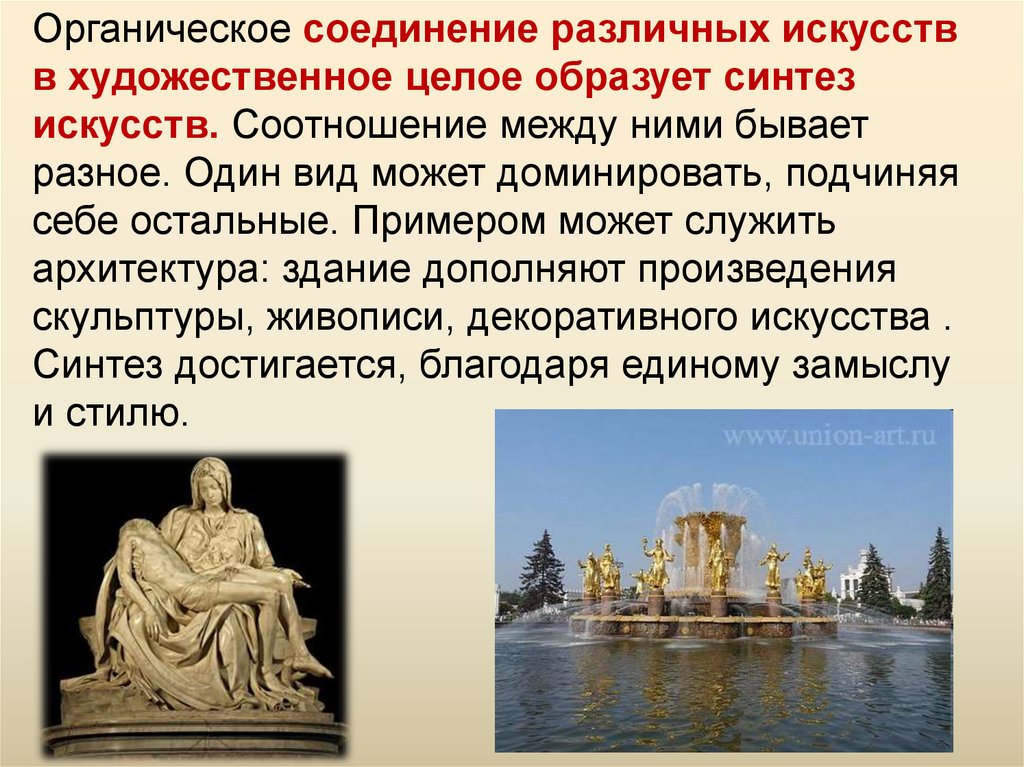 Виды искусства могут тесно срастатьсямежду собой (архитектура и скульптура