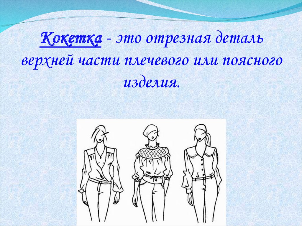 Кокетка - это отрезная детальверхней части плечевого или поясного