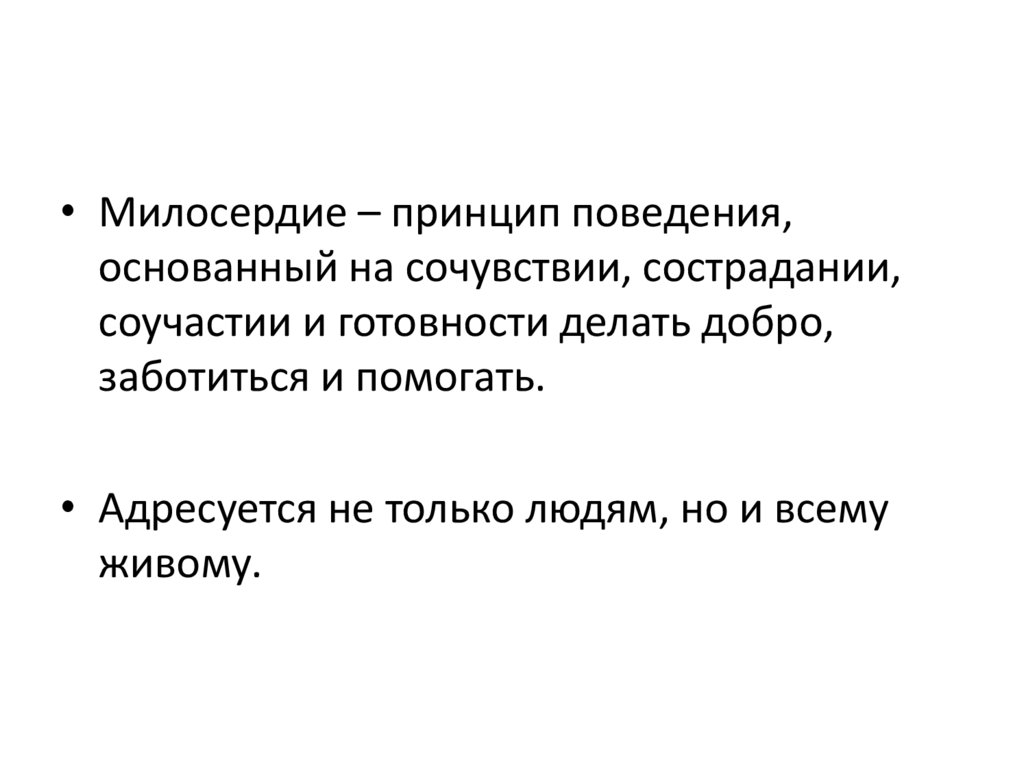 • Милосердие – принцип поведения,основанный на сочувствии, сострадании,