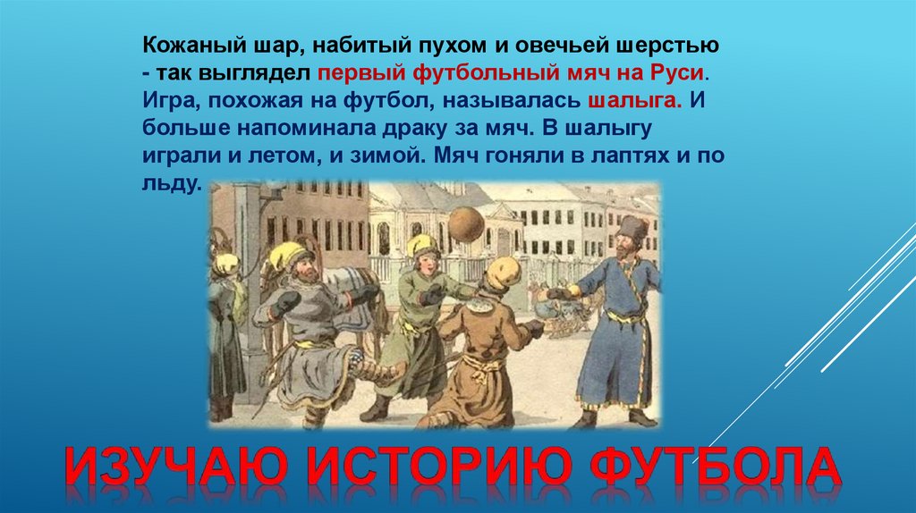 Кожаный шар, набитый пухом и овечьей шерстью- так выглядел первый футбольный мяч на Руси.