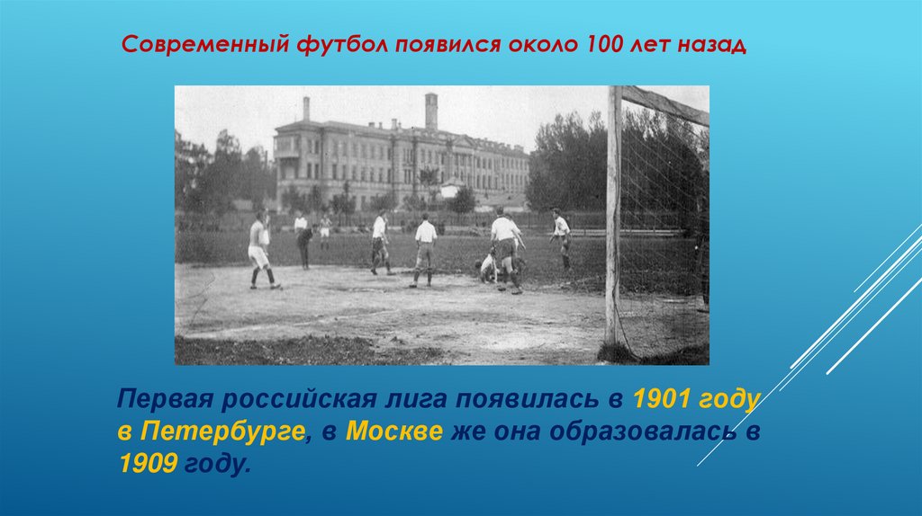 Современный футбол появился около 100 лет назадПервая российская лига появилась в 1901 году